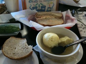 I can’t vouch for everything on the menu (it’s quite extensive), but I can say the nearly everything I’ve had there is the definitive incarnation of that item for my taste. It’s nothing fancy, just simple deli fare done extremely well. My go to sandwich is the Ted Danson (they don’t call it that, but that’s what it is) which is turkey on rye with coleslaw and russian dressing. They have a variation of that on the menu, but it adds cheese and is grilled – which is good, but not what I want. Along with that I get a bowl of matzo ball soup (served with a spectacularly crusty heel of rye) and a garlic pickle from their pickle barrel (they also have dill; both are excellent)