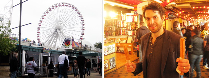 Because this was one of the few places I vividly remember visiting and loving during my 6th grade trip, I really wanted to go back. I had bought my mom a lovely peace sign necklace on faux-leather with clay beads in 1996 as a souvenir and I know how much she loved it so I’ve been dying to return and buy some for my whole family. So, I anxiously made the trek along the beach with the giant ferris wheel beckoning in the distance. Nothing really screams fun like a ferris wheel on a pier. When we finally reached our destination, I was quick to realize that 11 year olds and 26 year olds don’t exactly have the same taste in attractions. I’m not going to say that Navy Pier isn’t what it used to be. I think it’s probably exactly the same. I’m just not what I used to be. Sure, there’s a Bubba Gump Restaurant and a Garrett’s Popcorn, but I require more with my old age.