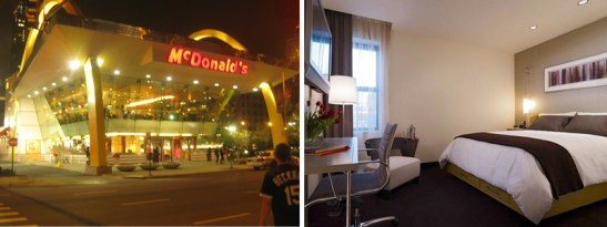 In the heart of downtown, you can find Hotel Felix. Just a hop, skip, and a jump away from the giant McDonald’s of the future and everyone’s favorite – Rainforest Cafe. With good prices and extremely comfortable beds, I would definitely stay here again. Bull Dog Corner had a problem with the intensity of the lobby’s orange sandalwood aroma, but, though I do like to spend most of my hotel stay in the lobby hanging out, we were mostly just passing through so it wasn’t a huge problem. The most appealing part of this hotel is it’s proximity to the weirdest yoga class of all time. Around 9 AM on Sunday, you can catch a group of about 20 people in everyday clothes standing with their backs against a brick building in a line in the middle of the city. They stood there for a good 20 minutes in what we assumed was some sort of protest before they started kind of moving their bodies around. I guess I’m not positive it was a yoga class- they kind of looked like the were being prepared to be taken out by firing squad as well. Either way, free entertainment.