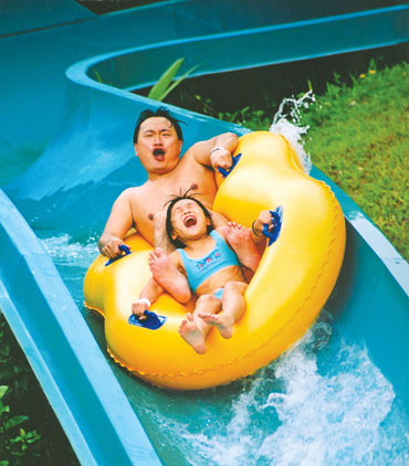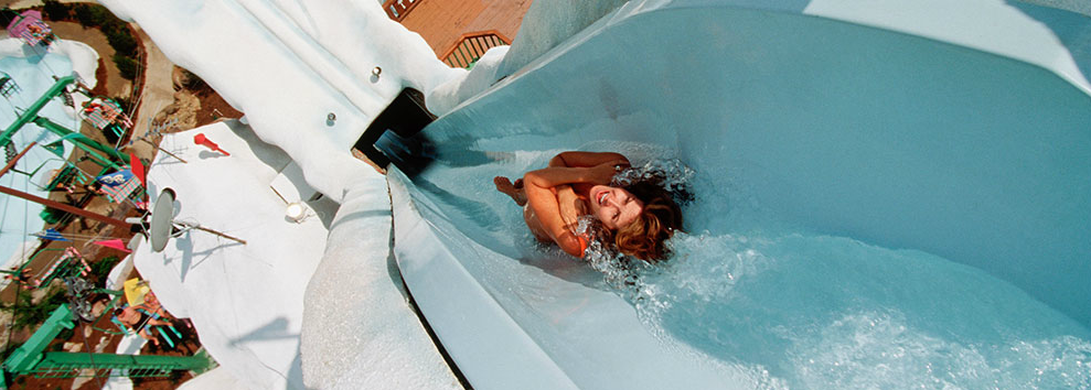 Once you reach the top of the staircase, you sit down at a place where, because it’s so steep, you can’t even see the slide from that vantage point. You would literally have to peer over the edge in order to see the slide you are about to go down. When you’ve slipped over the edge, you free fall for awhile. I suppose in the grand scheme of things, the amount of time you are free-falling would not be defined as “awhile”, but it’s certainly long enough to think about the fact that you are falling through the air, realize that it’s not really that fun, and wonder when your body will contact the slide again. Once these things have gone through your mind, you will be at the bottom where the slide runs parallel to the ground so that you can reduce speed and your mind can grasp the atomic wedgie that 60 mph waters created.